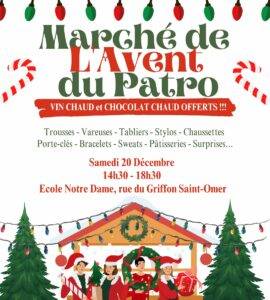 Le patronage Notre-Dame des miracles organise son marché de l’avent le samedi 20 décembre de 14h30 à 18h30 à l’école Notre-Dame rue du griffon. Vous