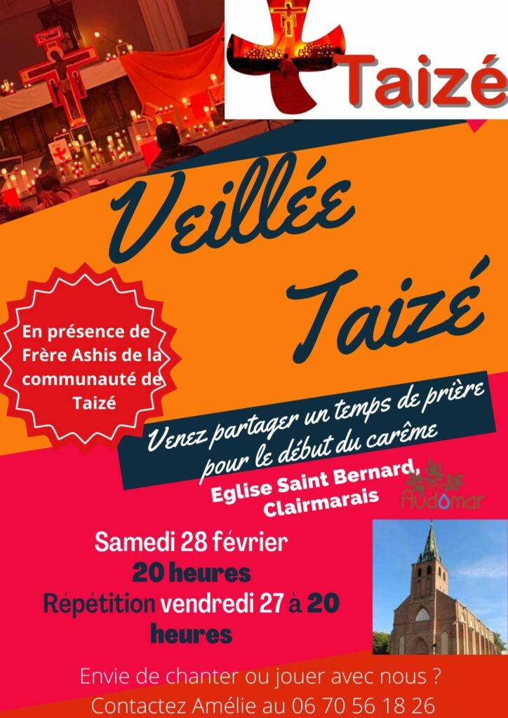 Le frère Ashis de la communauté de Taizé sera présent le samedi 28 février à 20h à l’occasion du temps de prière de Taizé à l’église de Clairmarais.Une répétition est proposée la veillée au soir à 20h pour celles et ceux qui souhaitent participer à l’animation musicale.Plus d’infos, Amélie au 06.70.56.18.26. ou par mail ameliedanjou@orange.fr.
