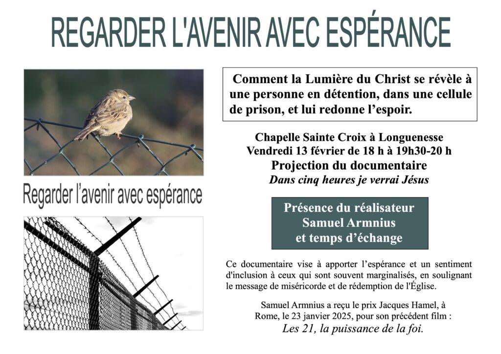 Le vendredi 13 février à 18h, le réalisateur Samuel Armnius sera présent à la chapelle Sainte-Croix à l’occasion de la projection de son documentaire « Dans 5 heures je verrai Jésus », sur l’espérance en milieu carcéral.Suite à la projection, un temps d’échange avec lui sera proposé.