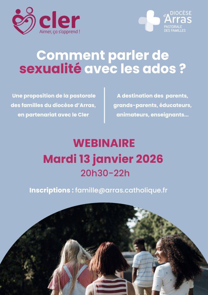 La pastorale des familles du diocèse d’Arras propose le mardi 13 janvier à 20h30 une formation en visio ayant pour thème « comment parler de sexualité aux ados ». Inscription à famille@arras.catholique.fr